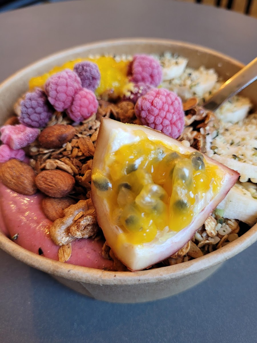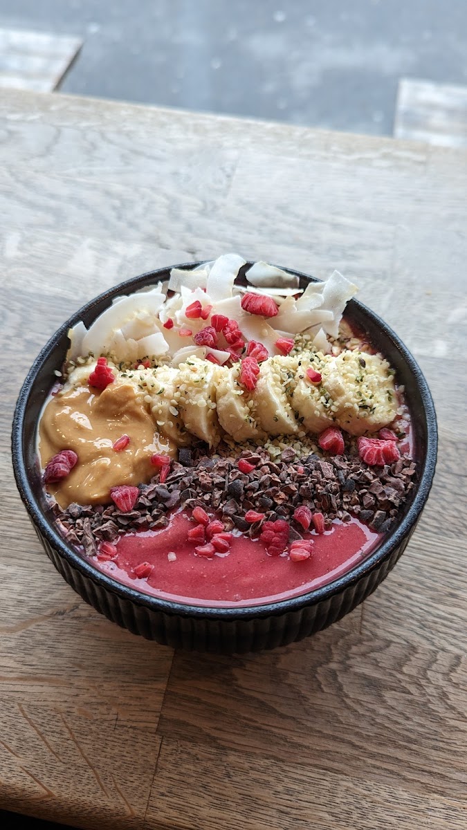 The atmosphere here is casual and straightforward. Seating is minimal and not designed for long hangs—this is more of a grab-and-go kind of place, though a few small spots are available for a quick pause. If you’re passing by in the morning or early afternoon, you’ll likely find a steady flow of health-conscious locals stopping in for a refreshing raspberry boost smoothie or an acai bowl topped with crunchy nuts and fresh fruit. It’s common to see folks on their way to work or taking a break during a weekend stroll through the neighborhood.